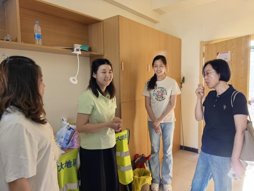 824下午,pg电子官方网站党委书记董婷、副院长王博一行前往巢湖地学实习基地亲切慰问正在进行野外地质技能综合实习的师生们,并深入宿舍了解学生生活情况,为同学们送去慰问品