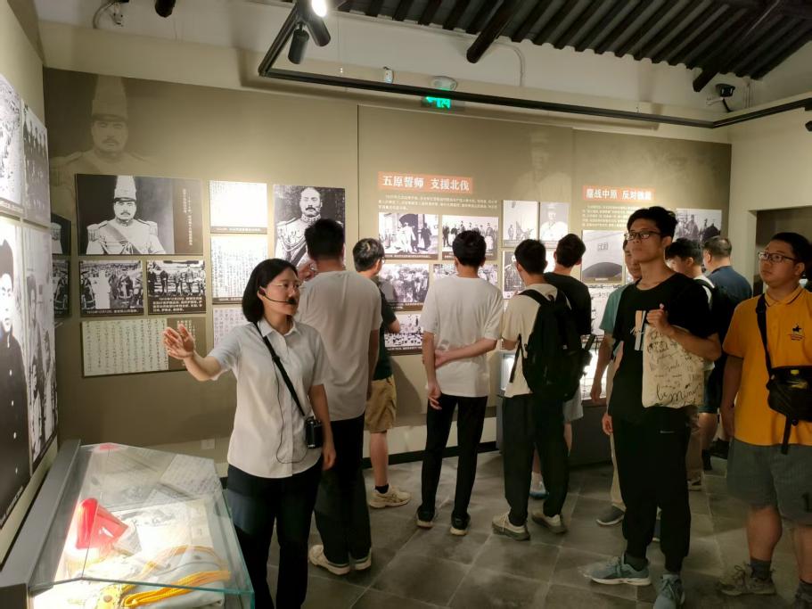 8月30日,实习队全体师生乘车前往安徽省巢湖市夏阁镇竹柯村冯玉祥故居,开展“追寻红色记忆”主题思政教育。在庄重古朴的院落中,同学们跟随讲解员依次参观了故居的多个主题展厅。在这里,同学们见到了冯玉祥将军在此居住时使用过的靠椅、棕床和书桌等家具,以及多位领导人、文人、画家题赠的挽幛。在中国近代历史进程中的关键时刻,冯玉祥将军作过重大贡献,有着深厚的爱国主义情怀,具有不屈不挠的斗志及艰苦朴素、热衷民生的平民思想、布衣作风。在讲解员的介绍下,同学们深入地了解到冯玉祥的一生:滦州起义、反对帝制、讨伐张勋、参加北伐、奔走抗日、坚持御侮。经过此次参观,同学们深刻体会到了如今的幸福生活来之不易,在以后的学习生活中,一定要刻苦努力,为国家发展做出自己的贡献。