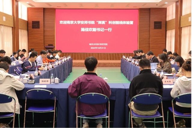 2024年10月31日下午,安邦书院“探真”科创前线体验营的30余位同学集中前往南京水利科学研究院铁心桥实验研究基地参观学习。新生学院党委副书记、副院长施佳欢,新生导师、pg电子官方网站副教授祝晓彬,新生学院院长助理、安邦书院学生事务中心主任周璐莹,新生学院育教中心副主任薛海彦,以及安邦书院辅导员刘苏平、吴沫一同参加活动。南京水利科学研究院研究生院副院长沙海飞,水文水资源研究所主任姜蓓蕾,岩土工程研究所主任钱亚俊,以及施睿博士接待了南大师生一行。