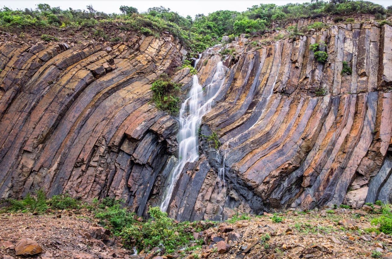 香港地质公园西贡火山岩园区的早白垩世流纹质火山岩柱群是香港最具代表性的地质遗迹。这些火山岩柱群源自约一亿四千万年前该地区的火山活动。当时剧烈的地壳活动导致香港东南面形成一座超级火山。经过前后长达300万年的猛烈喷发后,火山最终崩塌,形成直径约20公里的破火山口,大量火山物质在破火山口内堆积并冷却。由于冷却环境稳定及火山物质均匀一致,过程中火山物质能够随着冷却体积收缩,导致表面首先形成规整的六角网络状裂隙,并随着冷却方向下延伸,最终将庞大的火山物质分割成数百万条岩柱。