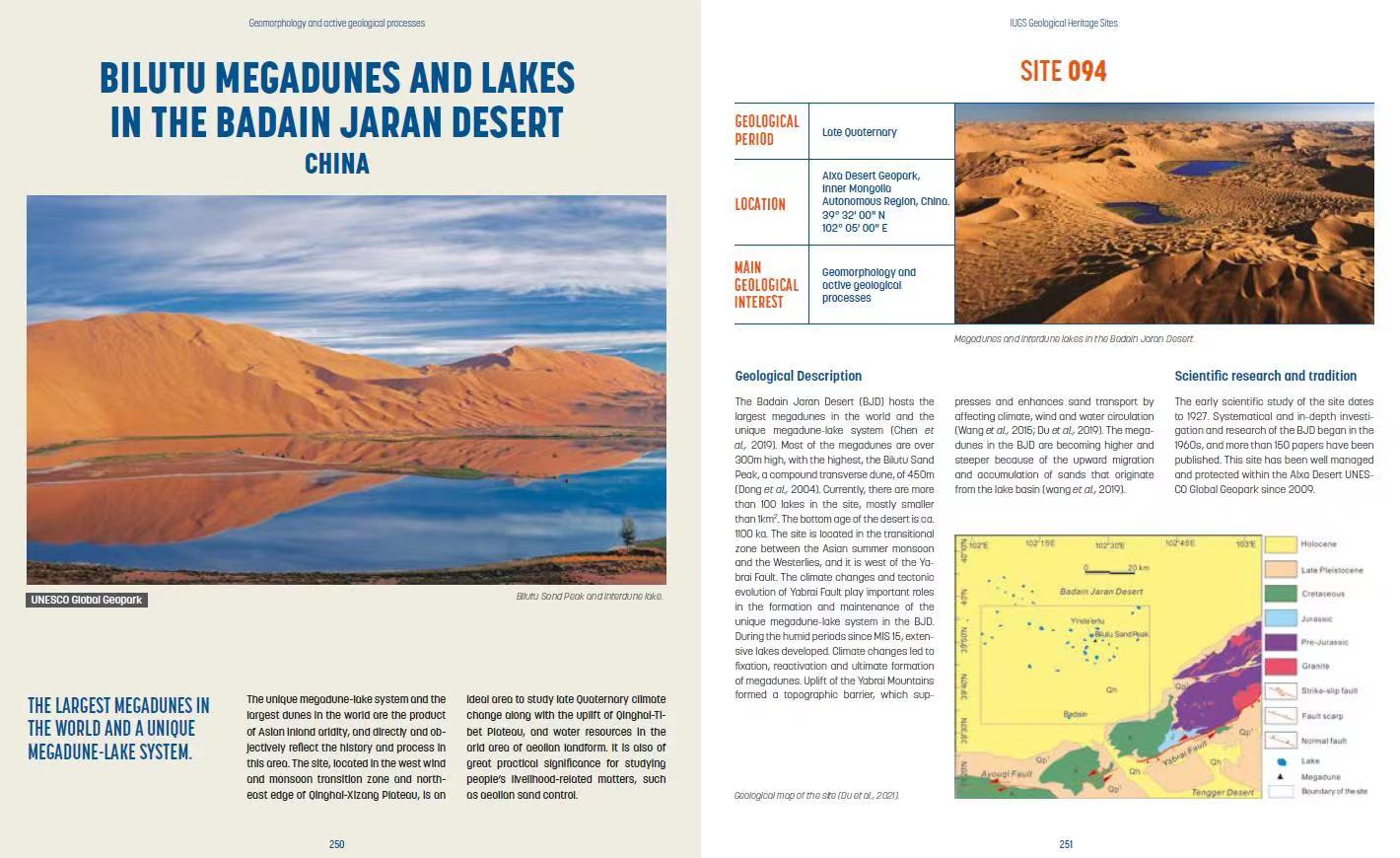 位于内蒙古阿拉善沙漠世界地质公园的《巴丹吉林沙漠必鲁图高大沙山和湖泊》入选首批国际地质科学联合会100个世界遗产地名录。