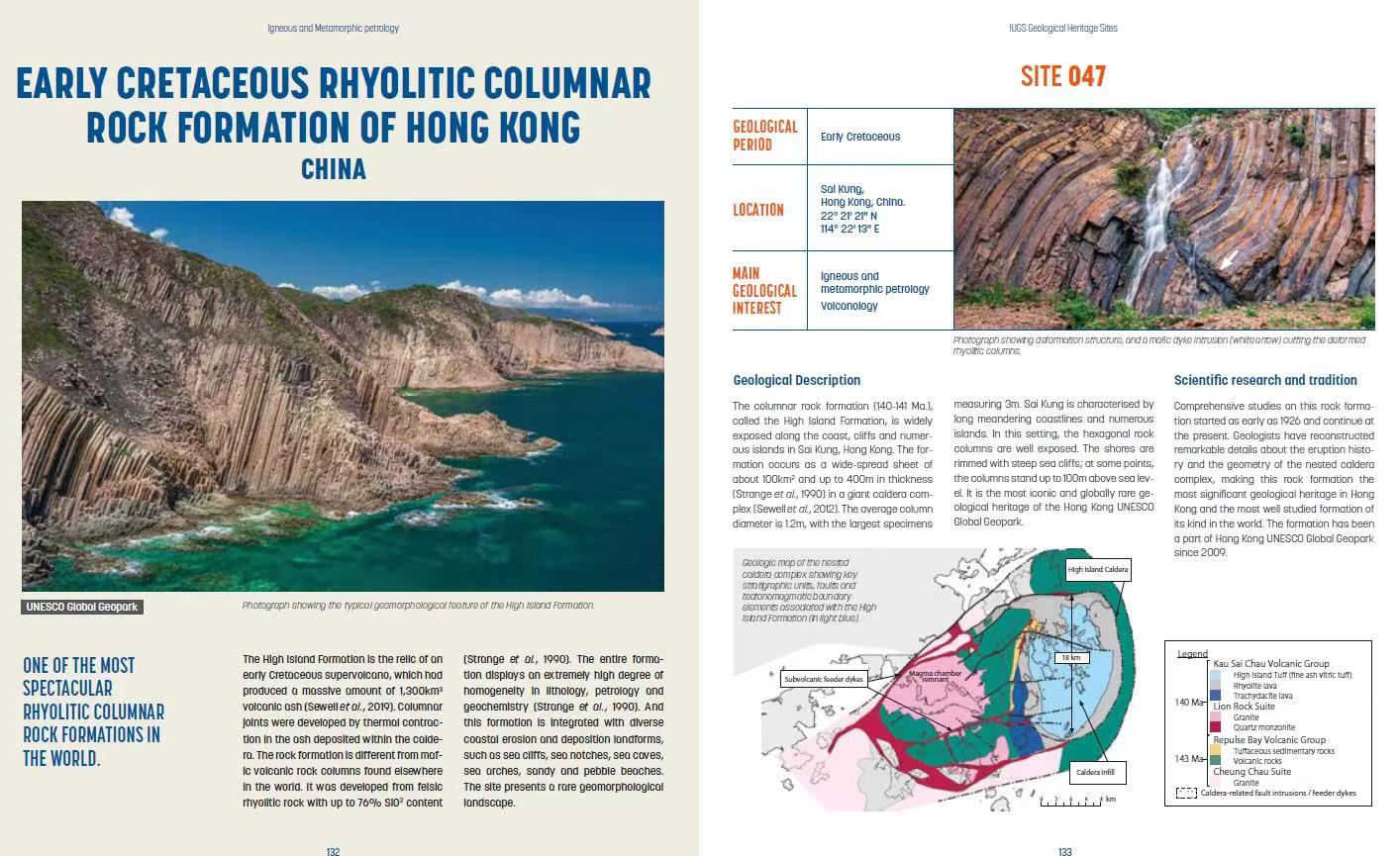 位于香港联合国教科文组织世界地质公园(香港地质公园)的早白垩世流纹质火山岩柱群于2022年10月26日,获选加入首批100个国际地质科学联合会(国际地科联)地质遗产地名录。