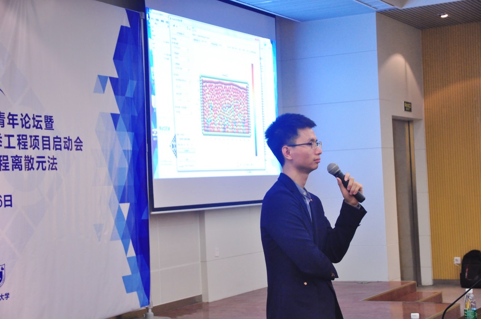 围绕着离散元新理论新技术、离散元宏微观研究和应用,以及离散元算法和软件研发,张丰收、赵高峰、冯春等7位青年科学家做特邀报告,大会还特别邀请专家、美国威斯康星大学黄柏铭教授介绍了基于GPU的数值模拟软件开发。