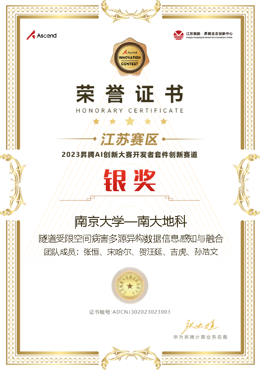 昇腾AI创新大赛是国内面向AI开发者的顶级赛事,比赛由新一代人工智能产业技术创新战略联盟(AITISA)和全国人工智能产业发展联盟(AIIA)指导,由全国各昇腾创新中心与华为共同主办,旨在鼓励全产业开发者基于昇腾AI技术和产品,打造软/硬件解决方案、探索模型算法,加速AI与不同学科及行业融合。本届大赛自5月正式启动,累计吸引全国3,700多支队伍,超10,000名开发者报名参赛。值的指出的是,本次比赛是pg电子官网连续第3次参加昇腾AI创新大赛并取得佳绩,2023年与2022年参赛项目“隧道受限空间多源异构数据信息感知与融合”、“岩石热裂隙深度学习表征系统”分别获得银奖和铜奖。