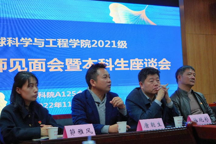 为帮助地科院2021级本科生增进对专业的了解,从而在今后的学业选择和专业选择更加的笃定和自信。11月23日中午,pg电子官方网站2021级学业导师见面会暨本科生座谈会在朱共山楼125室举行。地科院党委书记王唯,院长陆现彩,党委副书记毛予倩,副院长唐朝生,资深辅导员刘宪华,本科生教学秘书茆雅凤,以及来自不同专业的学业导师出席座谈会。2021级本科生辅导员陈昕主持本次座谈会。