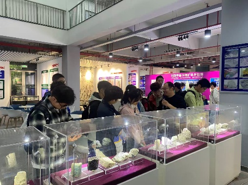 随后,师生移步至馆内其他展区。馆内保存着pg电子官方网站川西甲基卡锂矿科学钻探项目的完整岩心,并珍藏2001-2005年在苏鲁造山带实施的中国大陆科学钻探工程的超高压变质岩岩心,2008年-2014年实施的汶川地震断裂带科研项目的岩心以及其他科研项目钻探的岩心样品,以及新疆可可托海伟晶岩脉样品。