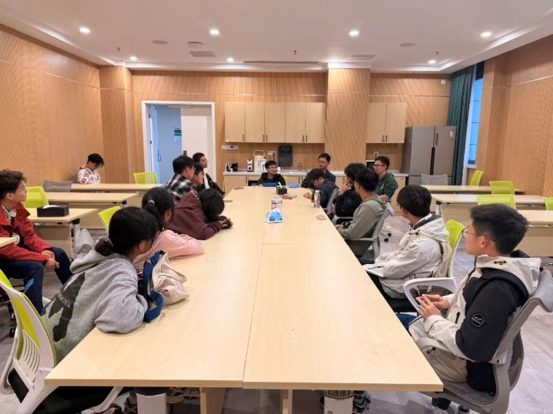活动的最后,大家来到中心会议室。师生与朋辈导师围坐一圈,依次进行自我介绍,并展开自由交流。老师们关切询问同学们近期的学习生活情况,朋辈导师则结合自身经验给予实用建议,现场互动自然,交流气氛融洽。