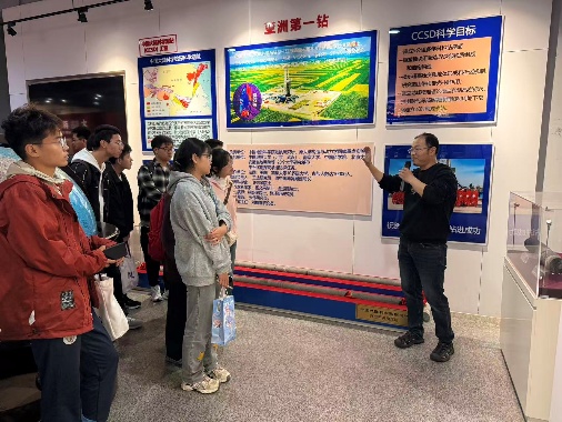 岩心馆入口处,pg电子官方网站教授李广伟老师已提前等候。他以“大家知道‘三深’是哪三深吗?”为引,迅速拉近与同学们的距离。在红色展墙前,李老师系统介绍了我国大陆科学钻探的发展历程与技术突破,并结合现场展品,指出了该领域未来的研究方向。