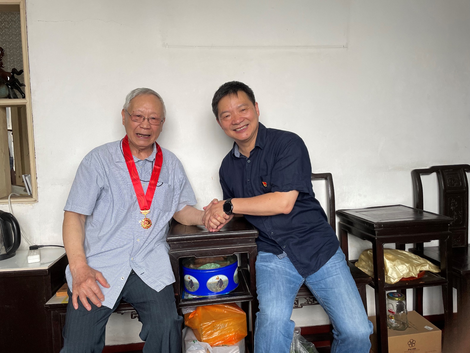 对于因身体等原因未能亲临颁发仪式的老党员,院党委书记王唯于6月24日进行了走访慰问,代表学院向他们致以诚挚的问候和崇高的敬意。在走访慰问中,王唯关切的询问了老党员的身体健康、生活情况等,为他们佩戴“光荣在党50年”纪念章,并向他们简要介绍了学院的教学、科研情况。