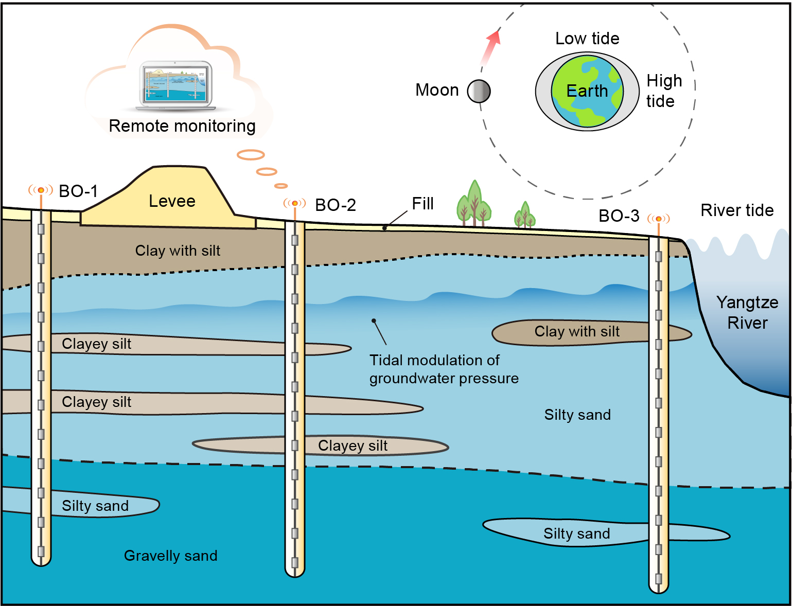 上述研究成果以“Soil stratum tides”为题近期发表于国际地学综合类顶级刊物Geophysical Research Letters,施斌、张诚成和A. J. F. Hoitink为共同通讯作者。该研究得到了国家自然科学基金重点项目、青年科学基金项目及pg电子官方网站毓秀青年学者计划等的资助。