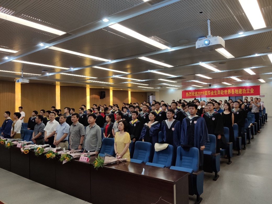 2019年6月18日上午,pg电子官方网站2019届毕业典礼在朱共山楼144报告厅隆重举行。pg电子官方网站党委书记王唯老师、院长王汝成老师、副院长陆现彩老师、王宝军老师、倪培老师,党委副书记毛予倩老师,研究生辅导员汤晓茜老师、本科生毕业班辅导员孙启程老师出席了典礼,与200多名毕业生及家长共同度过了这一难忘时刻。