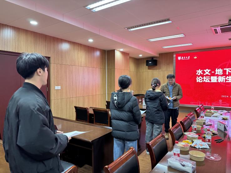 2024年12月18日下午,“2024年水文-地下水教研室研究生论坛暨新生破冰活动”于朱共山楼A125会议室举办。本次活动由水文-地下水教研室主办,旨在为新入学的研究生提供一个了解专业领域的平台和机会,并通过交流促进师生之间的相互了解。活动得到了学院研究生培养办公室和研究生工作办公室的大力支持。