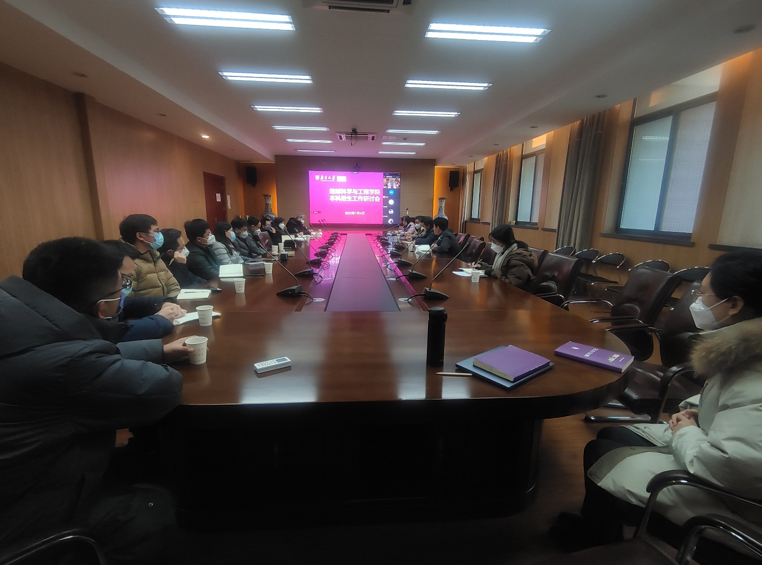 2023年1月4日下午,pg电子官方网站在朱共山楼A205会议室召开学院本科招生工作研讨会。学院党政领导班子成员、招生工作组代表、教师代表、本科生辅导员、教务员等参加会议。会议采用线上线下同步形式,由党委副书记毛予倩主持。