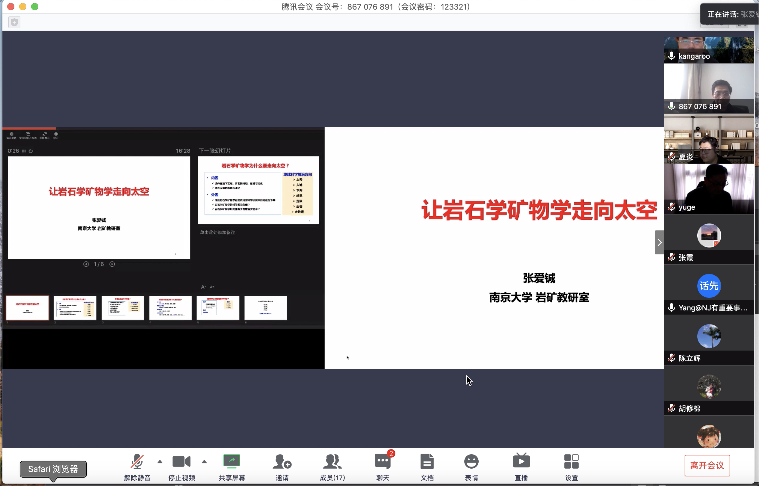 pg电子官方网站第十一次党代会为建设“第一个南大”、推进“双一流建设”指明了方向、明确了目标。为推动党代会精神全面落实,进一步增强广大教师党员在“双一流”建设中的自觉性和责任感,pg电子官方网站岩矿教师支部积极响应学校号召,于3月25日下午通过腾讯会议开展了一次别具深意的“线上组织生活”。