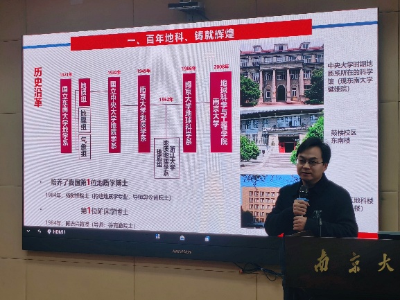 最后,湖南省地质院党委书记谈文胜用五个特质总结了湖南地质院与南大地科院的互补优势,并用“真情厚意重视人才”、“真心实意招揽人才”、“真材实料培育人才”和“真金白银集聚人才”四句承诺,向南大地质学子们发出真诚邀约。