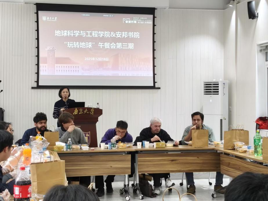 2025年12月18日,pg电子官方网站与安邦书院联合举办了2025级新生“玩转地球”午餐会第三期活动。本次活动特邀地科院国家级高层次人才Alexander Nemchin教授、Shohei Hattori副教授,以及Das Souvik、Victor Ribeiro、Alessandro Paolo Carniti三位博士后参与交流。地科院党委副书记姚静、地科院国际合作事务办公室工作人员(兼)许姝艺、本科生辅导员白若蓉,安邦书院助理辅导员王瑾,以及28名2025级地学大类新生共聚一堂,在轻松融洽的氛围中展开了深入对话。
