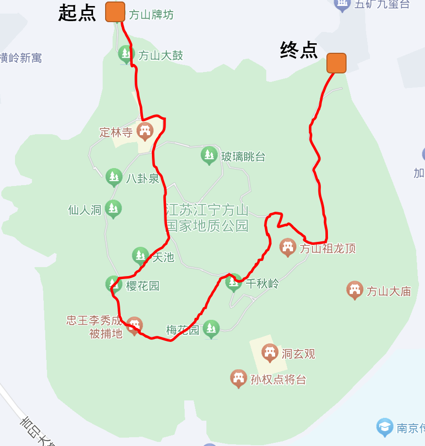江宁方山国家地质公园是南京地区著名的死火山之一。风景区发育独特的气孔构造、火山颈、火山岩古风化面等火山地貌。方山火山岩下覆的洞玄观组还出土有“安琪马”等珍贵化石。风景区内有灰岩景观石、白云岩碑材、钟乳石、叠层石、硅化木、路面地砖节理、花岗岩等多种地学现象观察点,是理想的野外地质实习实践的场所。