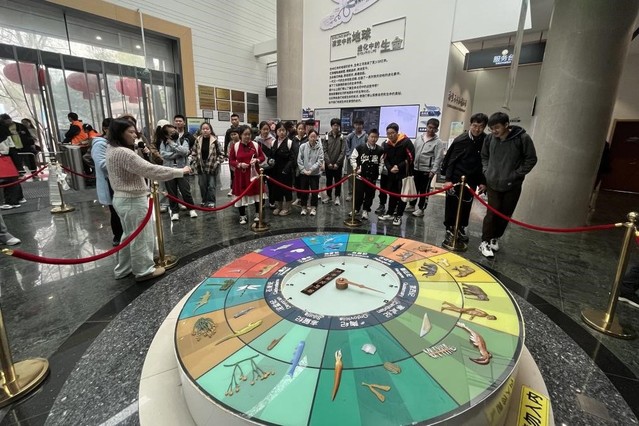 在南京地质博物馆,南大校友徐老师热情地向同学们讲解介绍博物馆的各项展品,让学生身临其境地体验生命的诞生、演化的曲折经历,了解生命进化由水生到陆生、简单到复杂的过程。