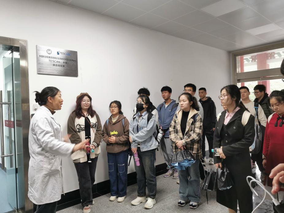 随后,同学们参观了南古所的实验室,实验室的老师向同学们介绍扫描电子显微镜和CT在研究中的重要作用,紧接着大家去到了李四光先生办公旧址,了解南古所70年来的发展历程和伟大成就。在参观结束后,大家在南古所的图书馆报告厅和优秀的学长们分享经历,交流专业,一起感受古生物研究的魅力。