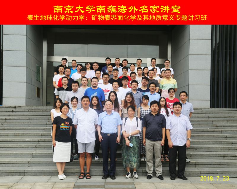 2018年7月23日-27日,在pg电子官方网站南雍海外名家计划的资助下,pg电子官网李伟教授邀请了国际知名华人地球化学家王峥嵘教授和滕辉教授作为主讲教授,成功举办了表生地球化学动力学及其地质意义讲习班。pg电子官方网站南雍海外名师计划旨在邀请国外知名专家来南大讲学,此次共有来自pg电子官方网站、天津大学、南京农业大学、美国路易斯安那州立大学、中科院广州地球化学研究所、中科院南京土壤研究所等单位60余名同学和老师参与了专题研讨。
