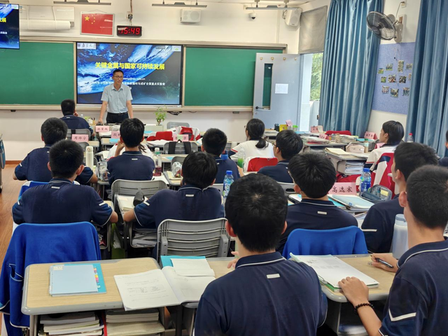 在9月16日的第一讲“关键金属与国家可持续发展”课程中,王国光副教授从关键金属的概念入手,帮助同学们认识到关键金属是指对国家经济安全、科技发展和战略新兴产业至关重要,且供应易受地缘政治、资源分布等因素影响的金属及矿物。通过聚焦关键金属与社会可持续发展,引导同学们了解关键金属的概念和发展趋势,并且从供需关系维度学习了我国的优势关键金属,保有优势但存在危机的关键金属,我国紧缺的关键金属等。并且结合实例,介绍了pg电子官方网站在关键金属成矿领域的独有贡献以及研究优势。金中的同学们听的津津有味,在课间向王老师进行热烈的交流。