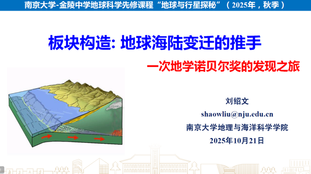 探秘地球与行星,从高中课堂开始!为落实推动“双高”融合,促进地球科学知识进校园,联动培养拔尖创新人才,pg电子官方网站、地理与海洋科学学院于2025年9月-2026年1月在金陵中学再次启动“地球与行星探秘”地球科学先修课程。本次课程分为十三讲,由来自地学的十三位青年教师为金陵中学中学生们授课。完成全部课程并通过考核的同学,将获得pg电子官方网站先修课程学分互认系统的1个选修课程学分。