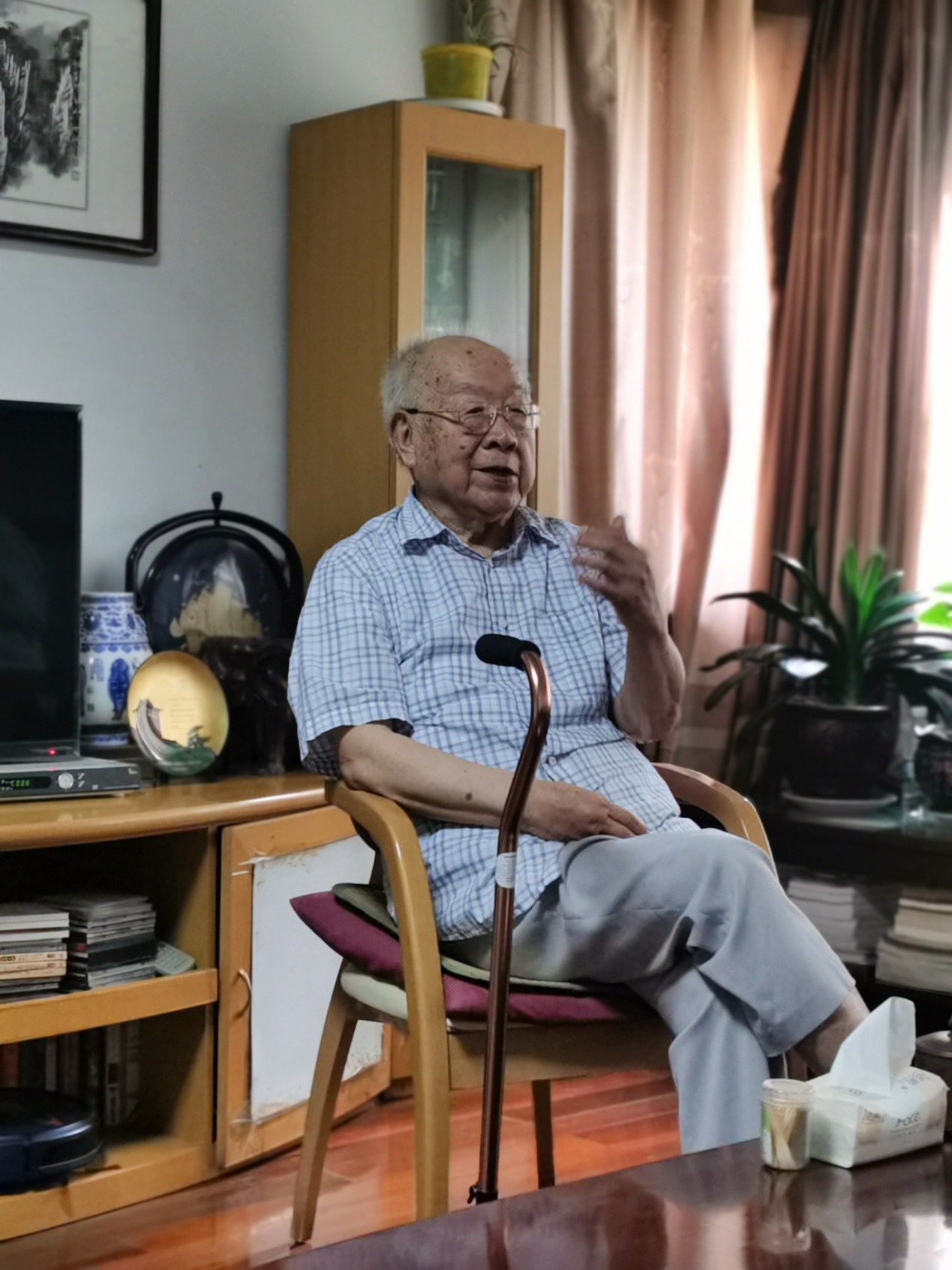 居家的王德滋院士早早在门口迎接,随后王汝成院长向王德滋院士介绍了学院的工作和发展现状,以及近期学院正在开展的主要工作。王院长表示地科院全体师生始终牢记学院前辈的传承“人才培养是我们的使命和自豪”,“为国、为校争光是我们的责任和传统”,“常怀忧患、从不懈怠,是我们力争上游的精神动力”。王德滋院士虽然93高龄,依然思维敏捷,时刻关心国家教育事业,关注学校、学院的建设发展,并积极建言献策给予指导,助力学院的发展。