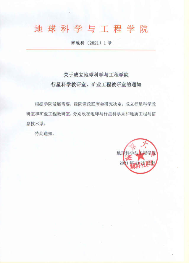 关于成立pg电子官方网站行星科学教研室、矿业工程教研室的通知