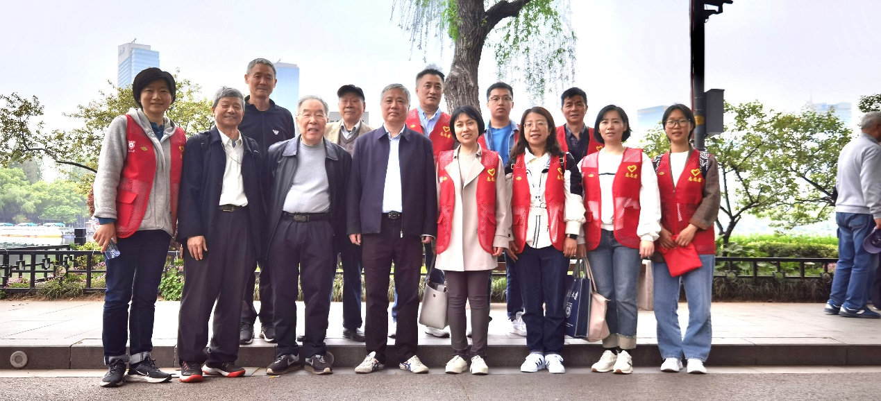 4月14日,江苏省老年人体育节开幕式暨pg电子官方网站老年人健步走活动在玄武湖公园举行,pg电子官网近30位退休老师参加了此次活动。一早,pg电子官网薪火志愿服务先锋队8名志愿者来到玄武湖公园,与参加健步走活动的pg电子官网退休老师进行互动交流,并提供相关服务。
