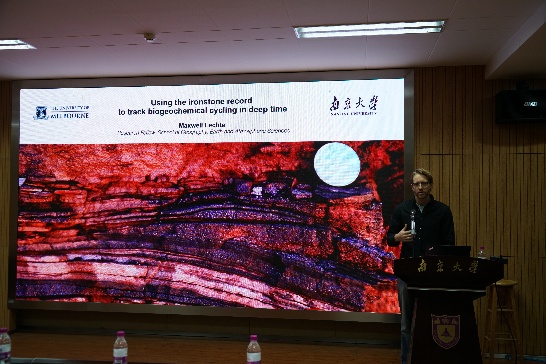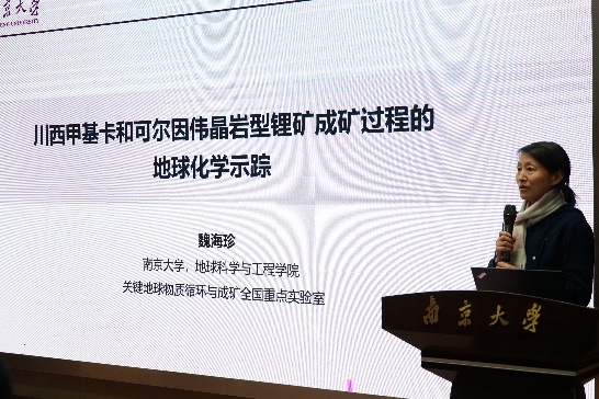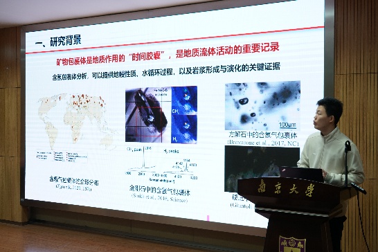 学术报告环节由实验室副主任李伟强、曹剑和杨涛教授分别主持,Max Lechte(墨尔本大学)、彭永波等七位老师交流了2025年度最新科研进展与成果。Max Lechte老师介绍了利用条带状铁建造研究深时生物地球化学循环的相关工作;彭永波老师围绕地球表面氧含量演变进程展示了最新研究进展;李军勇老师从岩浆弧的内生循环与多阶段深熔出发,探讨了岩浆效应与成矿驱动的相关机制;马安林老师探索通过沉积记录约束班公湖-怒江缝合带含铬铁矿蛇绿岩的形成与仰冲;连浩昆博士介绍了在矿物包裹体测试过程中光催化产氢条件与机制相关发现;魏海珍老师聚焦川西甲基卡和可尔因伟晶岩锂矿展示了成矿地球化学示踪研究进展;章荣清老师介绍了应用锆石同位素与微量元素组成对花岗伟晶岩稀有金属富集过程进行研究的最新进展。