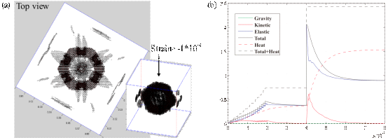 图1(a)垂向应变为1*10-4时的裂隙分布图(b)能量转化图