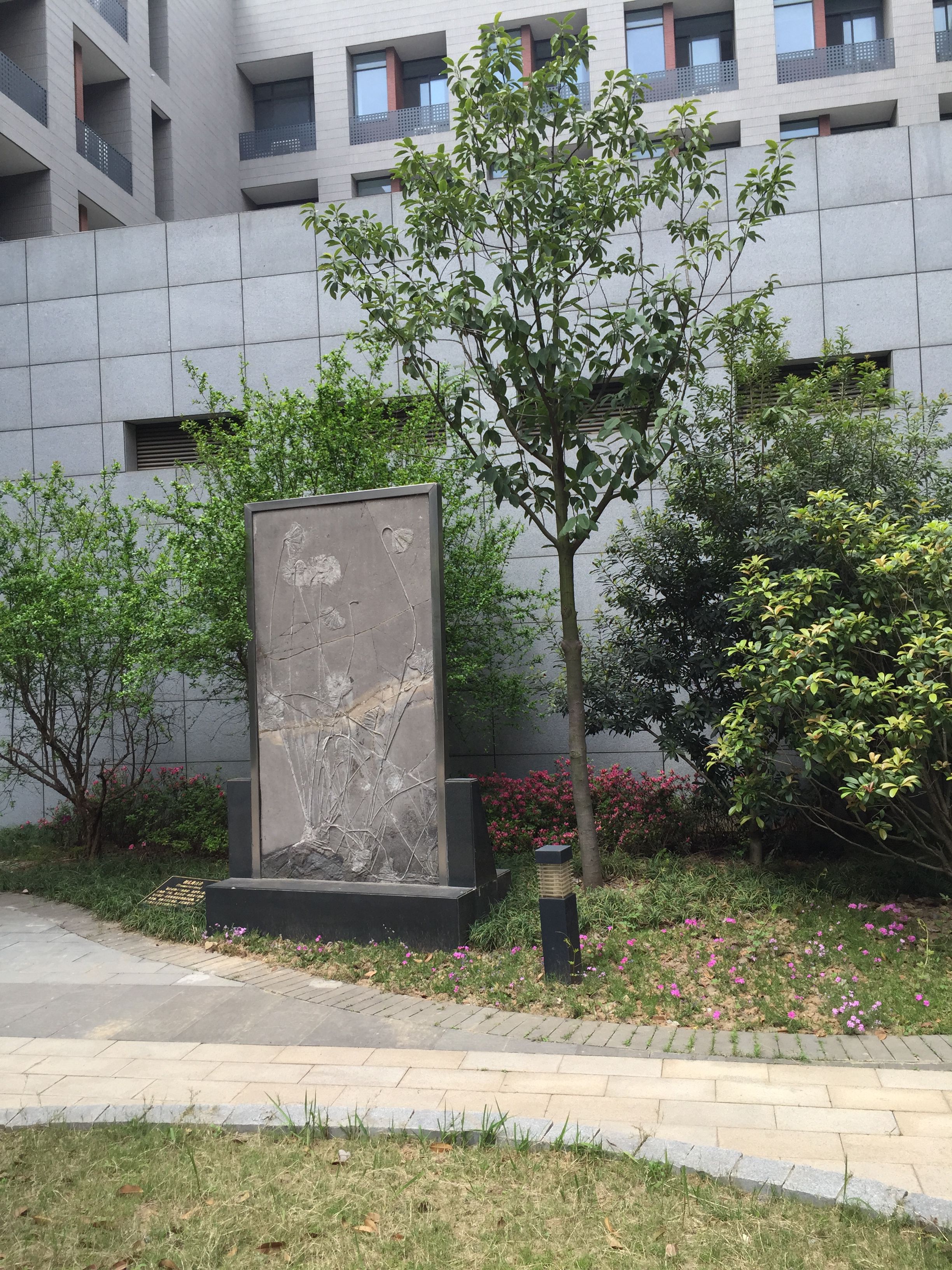 经过王德滋院士、南京园林所王军副所长和相关老师的共同努力,仙林地科大楼的中心花园初步建成,“赏石园”牌匾已悬挂在入园的进口处。