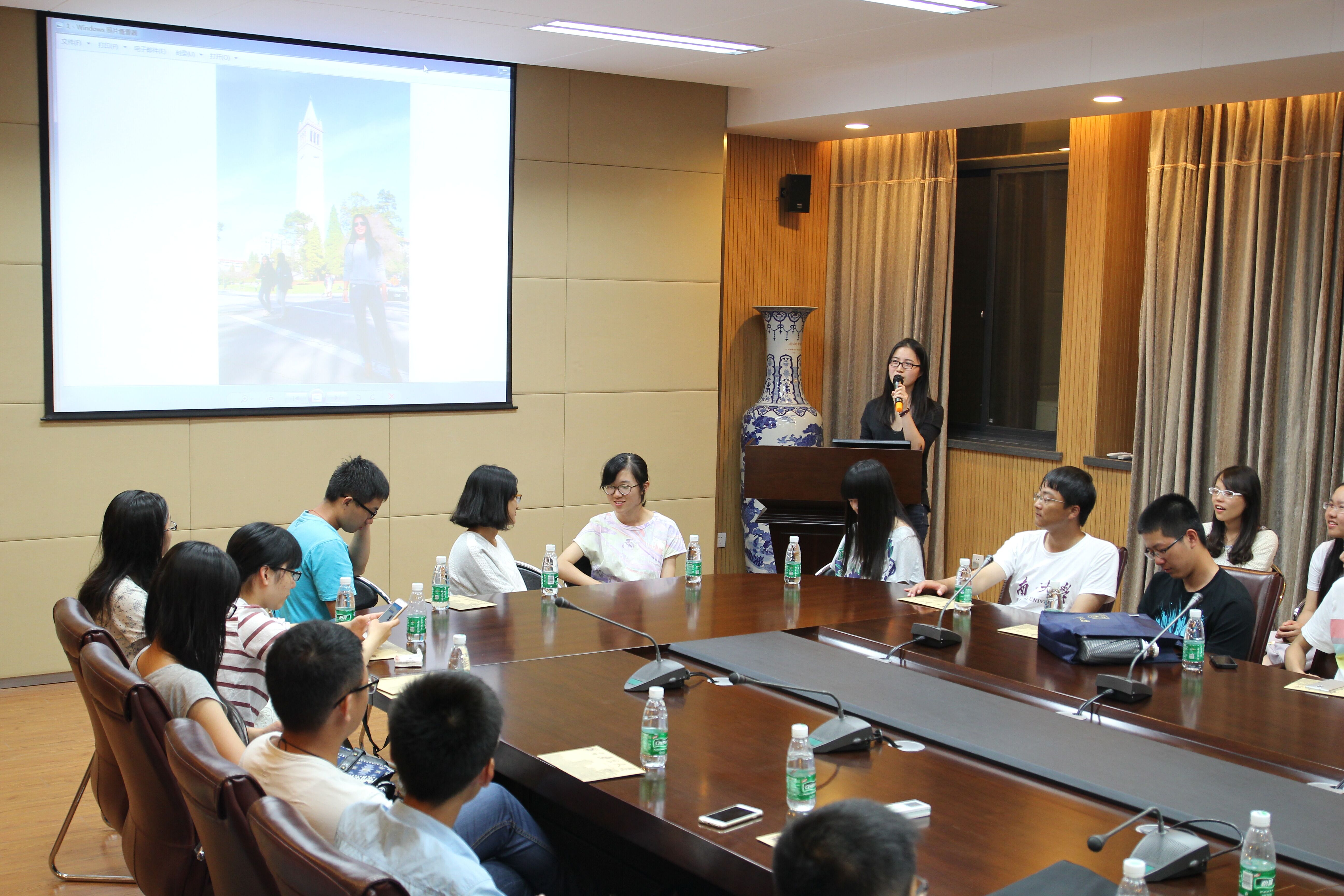 地理学院12级冯丽娜勉励新生们勇于追求梦想。她说道:“面对刚进入大学的迷茫,一定要勇于尝试。”接着她向大家分享了她担任年级长、团支书、女排队长等职务的经历,并用照片展示了她前往美国UCBerkeley交换的经历。美轮美奂的照片让现场不少同学心生向往。冯丽娜学姐认为出国交换的意义有三,第一是可以欣赏美景拓宽视野,第二是培养独立成长的能力,第三是提高学术能力。面对同学们的疑问,她分享了自己申请交换的过程和心得。最后她指出在大学要多尝试,明白自己能成为怎样的人。