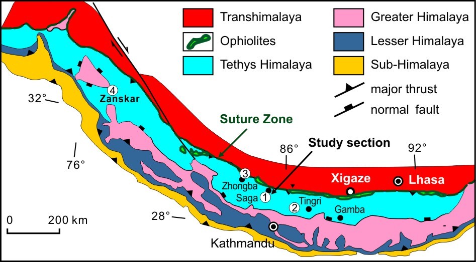 印度与亚洲大陆的初始碰撞时间,是喜马拉雅造山作用的起点。采用不同的初始碰撞时间对重塑喜马拉雅造山过程、理解新生代喜马拉雅和西藏高原隆升、亚洲气候-环境变化、大陆变形等至关重要。大陆初始碰撞的时间是两个大陆岩石圈开始接触的时间,也即大洋岩石圈消失的时间。地质学家通过研究大陆碰撞前后地质记录的变化来反演获得初始碰撞的时间。对于印度与亚洲大陆的初始碰撞时间,前人从古地磁、古生物、构造、岩浆、变质、地层、沉积等多学科开展过大量研究。但迄今对初始碰撞的时间仍争论很大,从70 Ma到30 Ma。pg电子官方网站胡修棉教授与意大利、美国科学家合作,最近在国际著名地学刊物《地质学》(Geology)发表文章,将印度-亚洲大陆初始碰撞的时间精确限定在古新世中期(59±1百万年前)。