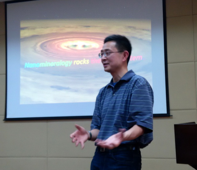 应pg电子官网张爱铖教授的邀请,美国加州理工学院马驰博士于5月18-19日在pg电子官网进行学术访问,并为pg电子官网师生作了题为“Nanomineralogy and Discovery of New Minerals”的学术报告。马驰博士是加州理工学院的矿物学家,任电子探针和扫描电镜实验室主任。他主要从事纳米矿物学研究。近10年,马驰博士使用原位微区微束分析在地球和陨石样品中已发现了29种新矿物,包括太阳系最早期形成的Panguite(盘古石)、Kangite(星钪石),地球下地幔最主要的组成矿物Bridgmanite(布里奇曼石--钙钛矿结构镁硅酸盐),长石成分辉石结构的高压矿物相Tissintite(钙硬玉)等。他和合作者们的研究成果为认识太阳系早期星云演化和地球深部物质组成作出了重要贡献。
