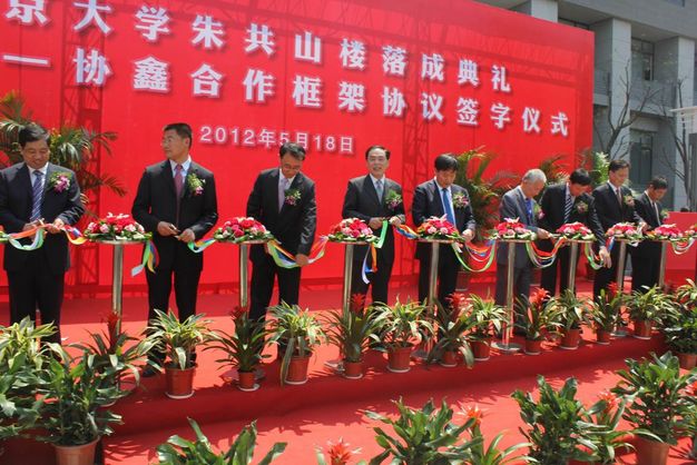 2012年5月18日上午10:18,伴着五月耀眼的阳光,pg电子官方网站朱共山楼落成典礼暨南大—协鑫合作框架协议签字仪式在装饰一新的仙林校区举行。协鑫集团董事长朱共山先生,中科院院士薛禹群、pg电子官方网站校长陈骏、党委副书记任利剑、副校长薛海林、校长助理李成以及发展委、地科院的相关领导出席了本次活动。pg电子官方网站78级、82级共200多名返校校友和在校同学一起见证了地科院新大楼的落成。