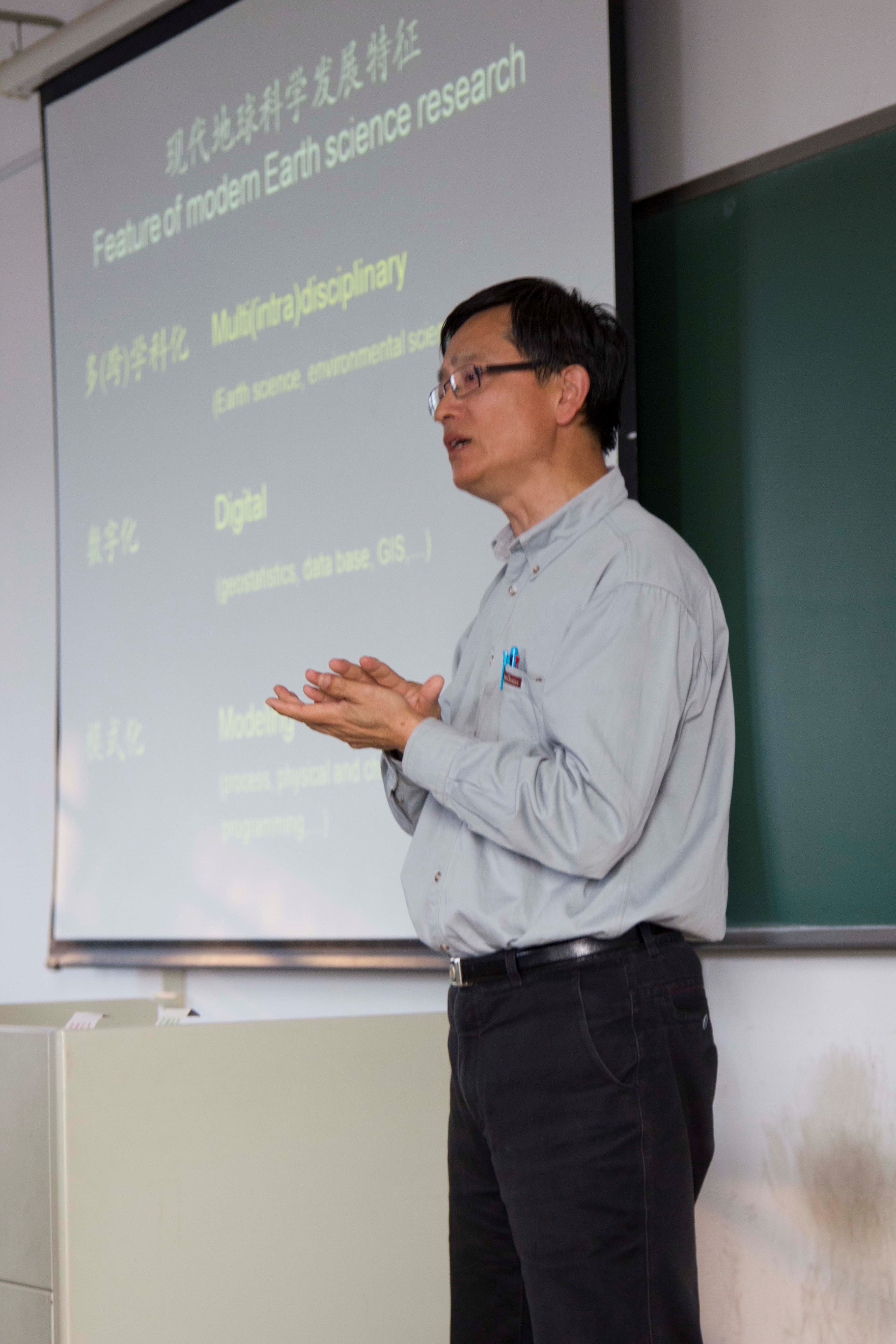 专注的听众 陈岩教授结合自己和他人的经历,深入浅出地阐释了自己对地球科学的认识,使大家受益匪浅。讲座的最后,五名同学分别向陈岩教授提出了自己所关心的问题。本次讲座在陈岩教授 “大家,能把科学做好的人,也能够把家庭关系处理好”的隽语中,以大家热烈的掌声结束。 陈岩,1982年毕业于成都地质学院,随后赴法国巴黎地球物理研究所深造,1993起任教于法国奥尔良大学,现为教授、博导,法国国家特级教授。主要研究方向为古地磁学、岩石磁学、板块构造学和地球动力学;研究领域主要为造山带构造演化、岩石圈与地壳变形机制和板块构造。主持和参与了若干国际和国内的科研合作项目,与pg电子官方网站、北京大学、中国科学院地质与地球物理研究所等单位有长期良好的合作关系,为中国培养了8名博士研究生。兼任pg电子官方网站、兰州大学兼职教授、教育部“海外教学名师”、pg电子官方网站思源讲座教授,中国科学院海外评审专家(2004-)、“Global Tectonics and Metallogeny” 杂志编委(2009-)、中国大地电磁卫星国际合作项目法方协调人(2012-)等职。