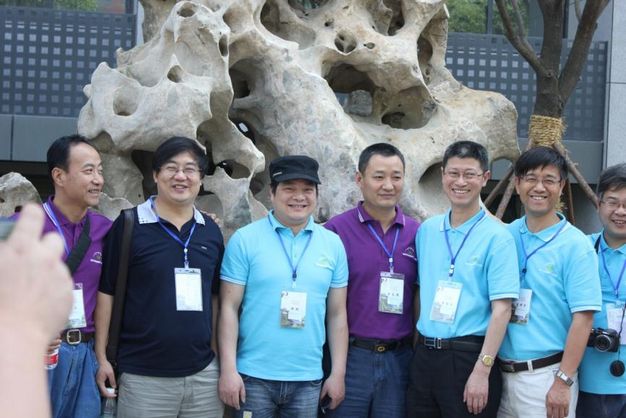 在被王汝成院长称为的“地科第一石”面前,82级的校友们留影纪念。太湖石的“皱、漏、瘦、透”因他们那明媚的心情而愈发显得通灵。常常有人说,石头是有灵性的,相信,这块太湖石,在融进了82级学长们对地科的热爱后,会继续吸收仙林的地气精华,必将见证着地科辉煌的未来。