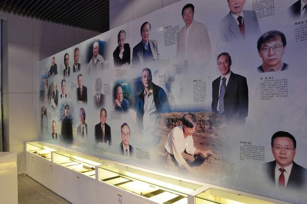 院史展首先映入眼帘的一面院士墙,展示了地科院办学以来培养的29位院士,约占pg电子官方网站所培养院士数的四分之一,充分说明了学院的办学和科研实力。在院士墙版块可以看到学院珍藏的几位院士手写手绘的本科毕业论文,老一辈科学家们严谨的治学态度让人肃然起敬。