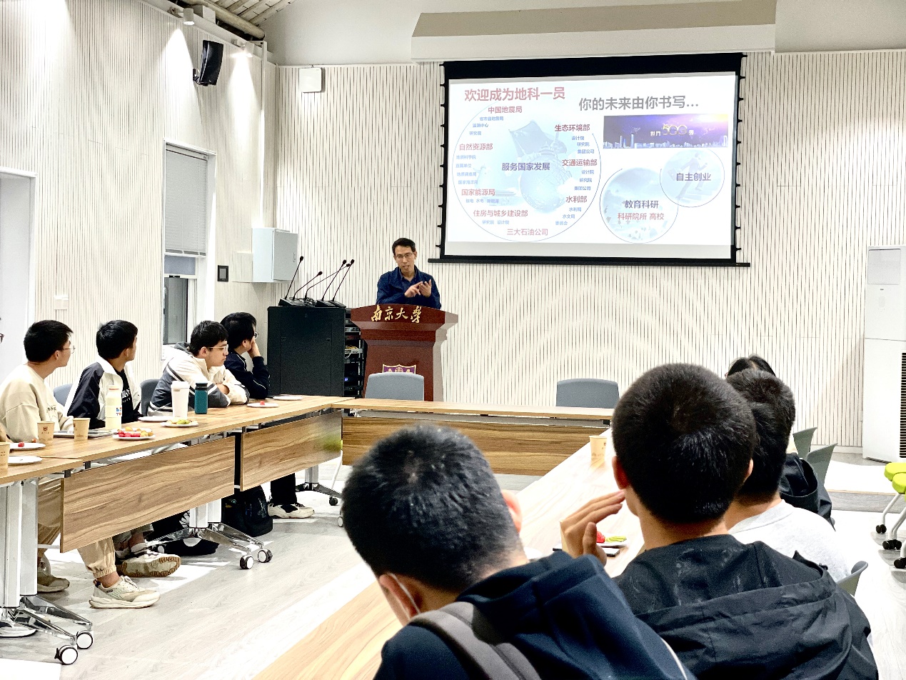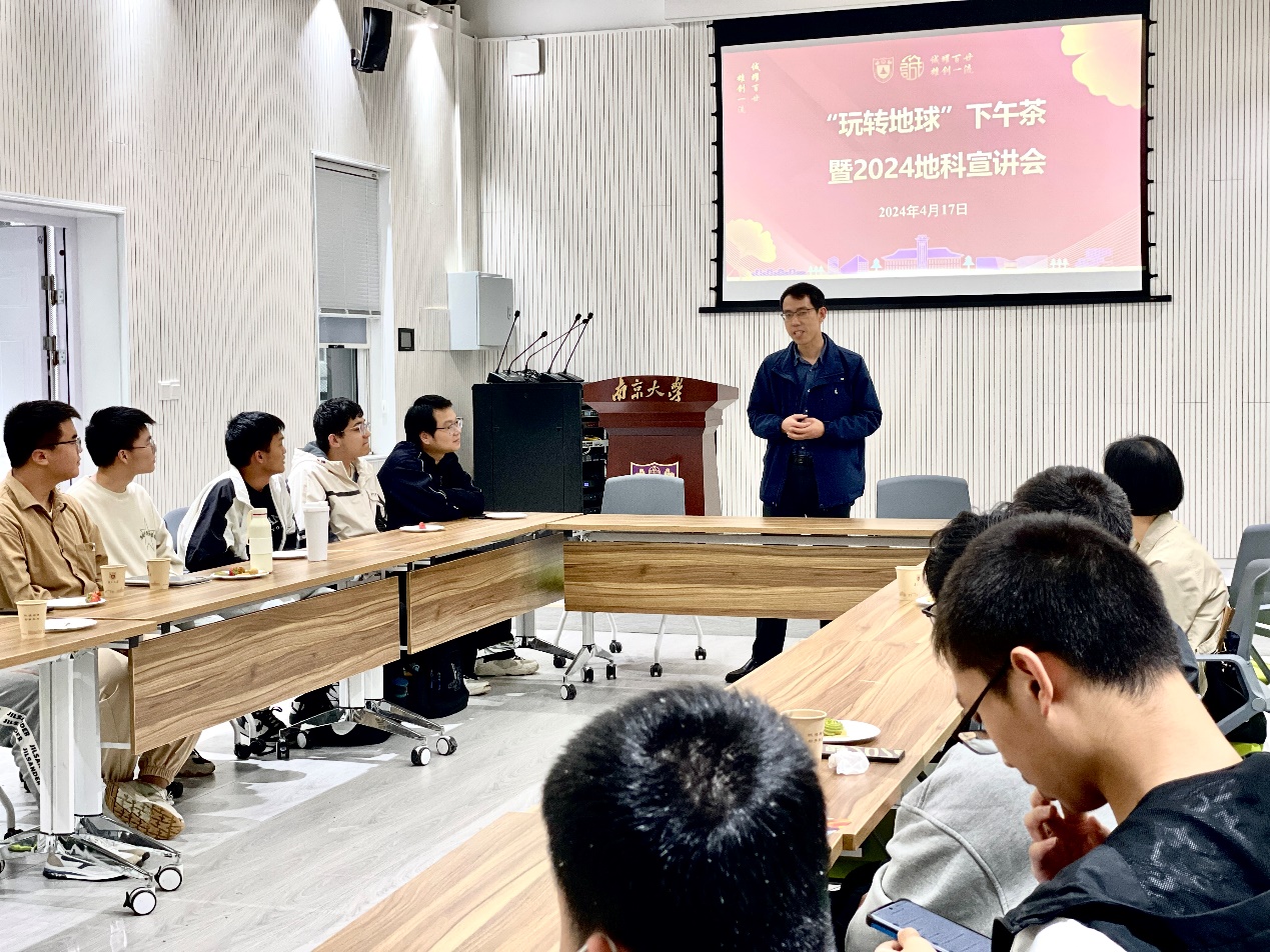 2024年4月17日下午,地科院联合安邦书院在鼓楼校区举行“玩转地球”下午茶暨2024大类分流地科宣讲会,活动邀请了地科院党委书记董婷、教学副院长王博到场与学生作专业宣讲和分流政策解读。