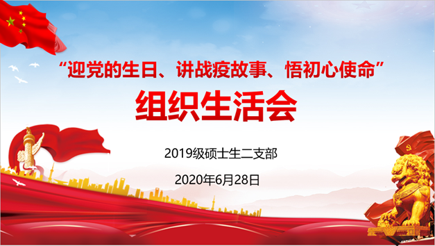 为加强疫情防控工作,根据教育部要求,校党委开展了基层党组织常态化疫情防控“四个一”行动。按照相关工作部署,6月28日,pg电子官方网站2019级硕士生二支部通过线上会议开展了“让党旗在防控疫情斗争第一线高高飘扬”专题微党课,以及主题为“讲战疫故事,悟初心使命”的组织生活会,使支部党员群众更深刻的了解党中央坚持全国一盘棋、集中统一领导疫情防控的制度优势;中国助力全球抗疫、推动构建人类命运共同体的担当。