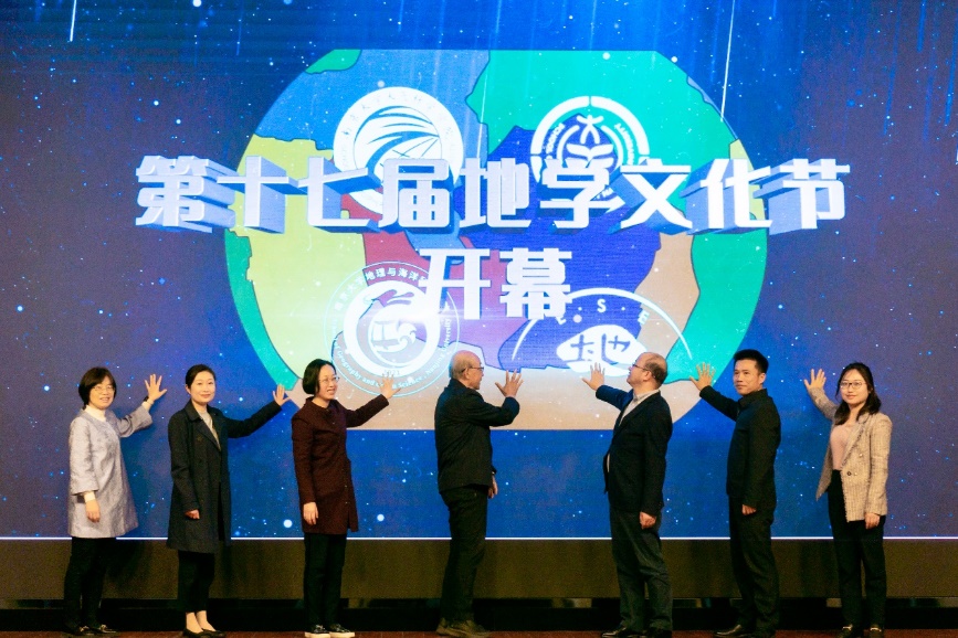 活动伊始,本届地学文化节的宣传片精彩上映。中科院院士、pg电子官方网站教授陈颙、新生学院党委书记蒋恩铭、pg电子官方网站教学运行服务中心主任董婷、大气科学学院党委书记林士尧、地理与海洋科学学院党委副书记陈卉、环境学院党委副书记周媛、pg电子官方网站党委副书记毛予倩为本届地学文化节揭幕。