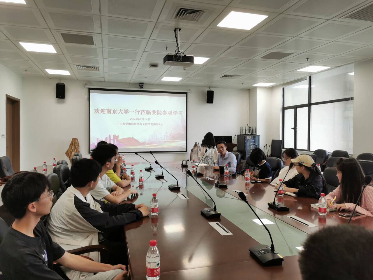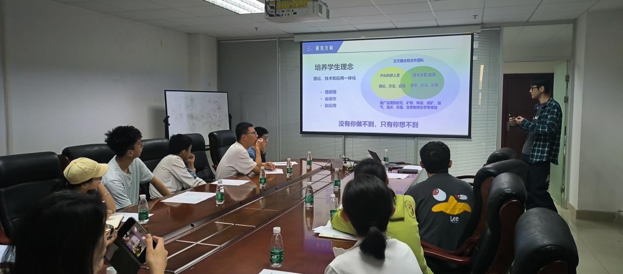 参观之后,大家来到会议室,王玉琨老师详细地介绍中大地科院的师资力量、学科发展以及人才培养情况。周斌老师和白若蓉老师也向中大的学生们介绍了pg电子官方网站地科院的各项情况。南大校友刘志超老师还介绍了中大地科院的几个研究方向并启发了同学们思考利用新技术运用于新地学的方式和方法。