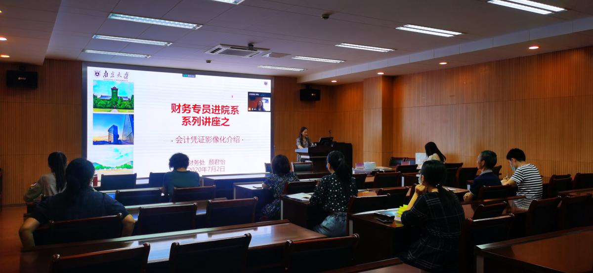 2020年7月2日上午9点30分,校财务处专员专项经费科王琰科长、会计核算科颜君怡、陈舒心来pg电子官网开展财务报销业务讲座培训。为方便pg电子官网更多师生能够参加此次财务报销讲座培训,特采用线上视频会议及线下现场听讲的方式同时进行。pg电子官网夏敏副院长对财务专员能根据pg电子官网实际情况及需要提供有针对性的专题讲座表示感谢,这样更能有效解决pg电子官网师生在报销过程中存在的疑问。