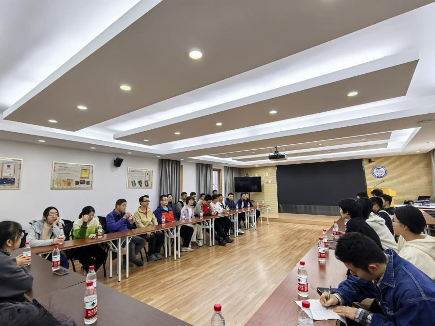 参观结束后,师生受邀来到地调院会议室开展座谈交流,在院任职的南大优秀校友许伟伟、万佳俊和徐士银表示热烈欢迎,在简单介绍完地调院基本情况与主要工作任务后,三位校友热情解答了同学们所提出的各种问题和疑惑,内容涵盖暑期实习机会、岗位入职要求、地科学习经验以及一些具体的地科学术实际应用问题。这次的面对面座谈会让同学们深入了解了地质学的就业方向、能力要求和任务使命,同学们对于自己的未来发展更加自信,认识也更加清晰。