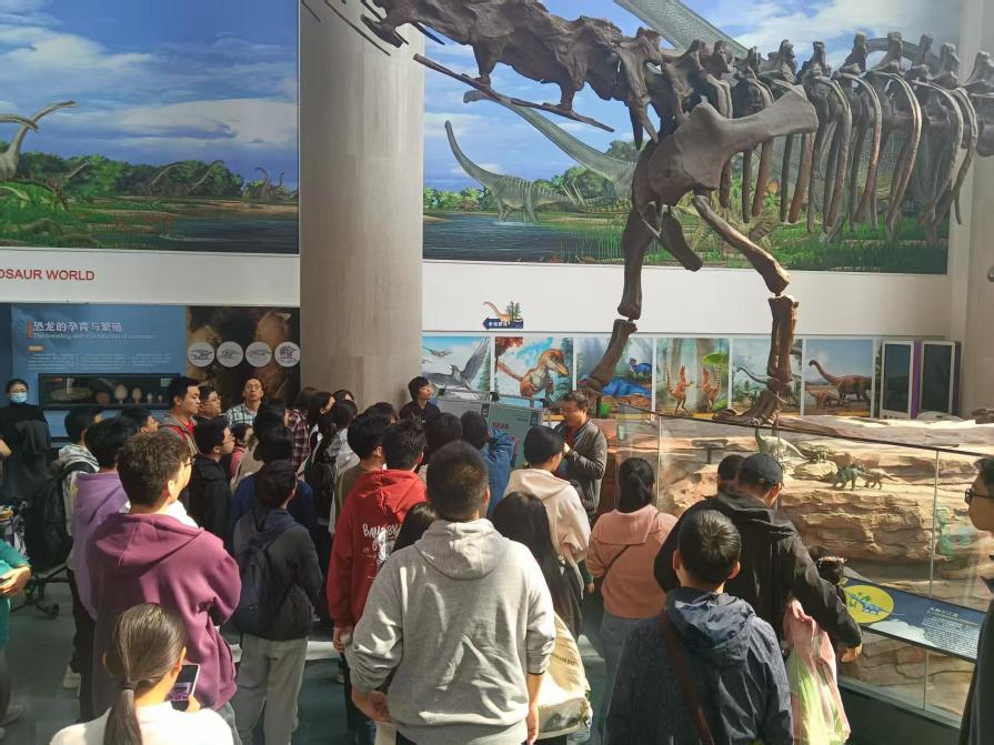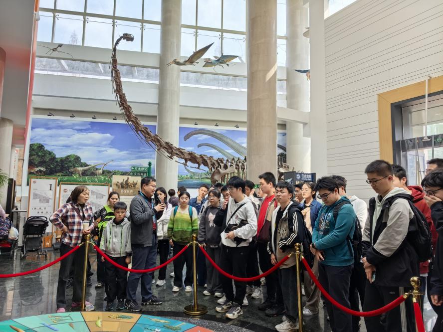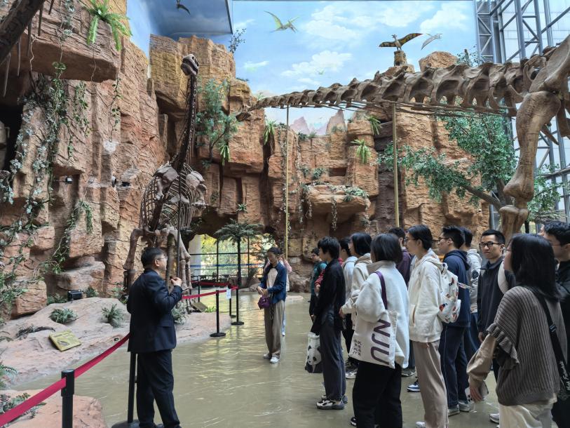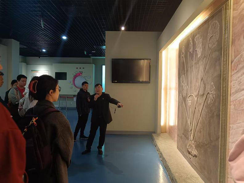 下午师生一行来到南京古生物博物馆进行参观学习。时值阳春三月,早樱初开,鸡鸣寺前游人如织,博物馆内热闹喧嚣,南古所研究员专程为南大师生进行导览讲解,大家心中的暖流同春意一样盎然回转。同学们跟随着讲解员的步伐回顾了地球生命数十亿年的进化历程,走过“上山之路”重温地球亿万年来的沧海桑田,欣赏了各式各样精美珍贵的古生物化石,初步学习了深时地球与生命领域相关的专业知识,感受到了地学科普教育的意义,为接下来更深入的学习做了有效的铺垫。
