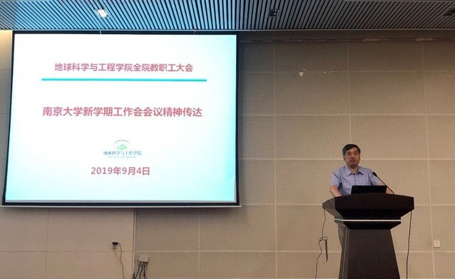 王汝成院长解读了吕建校长《转型提升再奋斗 改革发展续新篇》报告的主要精神,并从学科建设、队伍建设、人才培养、科学研究、开放办学、支撑体系和管理体系七个方面全面学习领会学校新学期工作部署。随后,王院长从科研工作、高层次人才队伍建设、学科发展和管理工作四个层面对学院上学期的工作进行了小结,并部署了学院新学期各项工作。