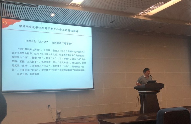 “方向决定前途,道路决定命运。我们要把命运掌握在自己手中,就要有志不改、道不变的坚定。”在庆祝改革开放40周年大会上,习近平总书记郑重宣示,必须坚持走中国特色社会主义道路,不断坚持和发展中国特色社会主义,为新时代改革开放指明了正确前进方向。王唯书记从习总书记郑重宣示入手,带领大家学习了胡金波书记在新学期工作会上的讲话精神,按照胡书记的要求激励动员全体教职工要拿出“我们都在努力奔跑”的精气神,保持“志不改,道不变”的定力、抓住“志不改,道不变”的重点、营造“志不改,道不变”的气场,做好本职工作,以真抓实干的姿态推动学院事业发展迈上新台阶,创造出无愧于时代的新业绩。随后,王书记在回顾了院党委2019年上半年主要工作的基础上,结合学校党委新学期重点工作安排,对学院党委新学期工作重点进行了全面部署,并详细介绍了院党委庆祝新中国成立70周年活动安排。