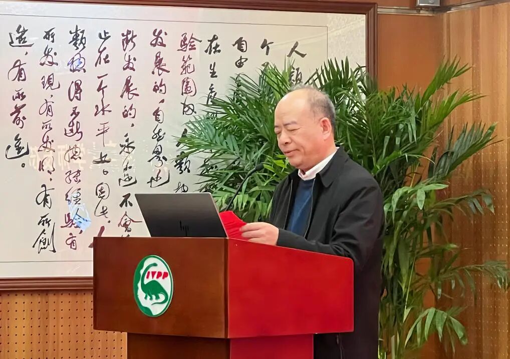 在热烈的掌声中,庞忠和会长致论坛开幕词。他首先向全体校友送上马年新春祝福。在回顾了过去一年中在京校友的主要活动和成果时,他说到四件大事:一是百岁校友夏其发向母校捐款百万,设立“夏其发奖学奖教基金”;二是校友季强、周忠和荣获未来科学大奖;三是校友陈衍景当选中国科学院院士;四是校友范宏瑞发现的稀土矿物获“宏瑞矿”国际命名。庞会长还分享了自己回母校讲学的心得体会。他强调,校友会将继续发挥好桥梁纽带作用,促进母校与校友和校友之间的互动与互助。在感谢学院领导、古脊椎所和参会校友对校友会工作的支持之后,他号召北京校友在新的一年里携手共进,为母校与社会发展贡献更多力量。