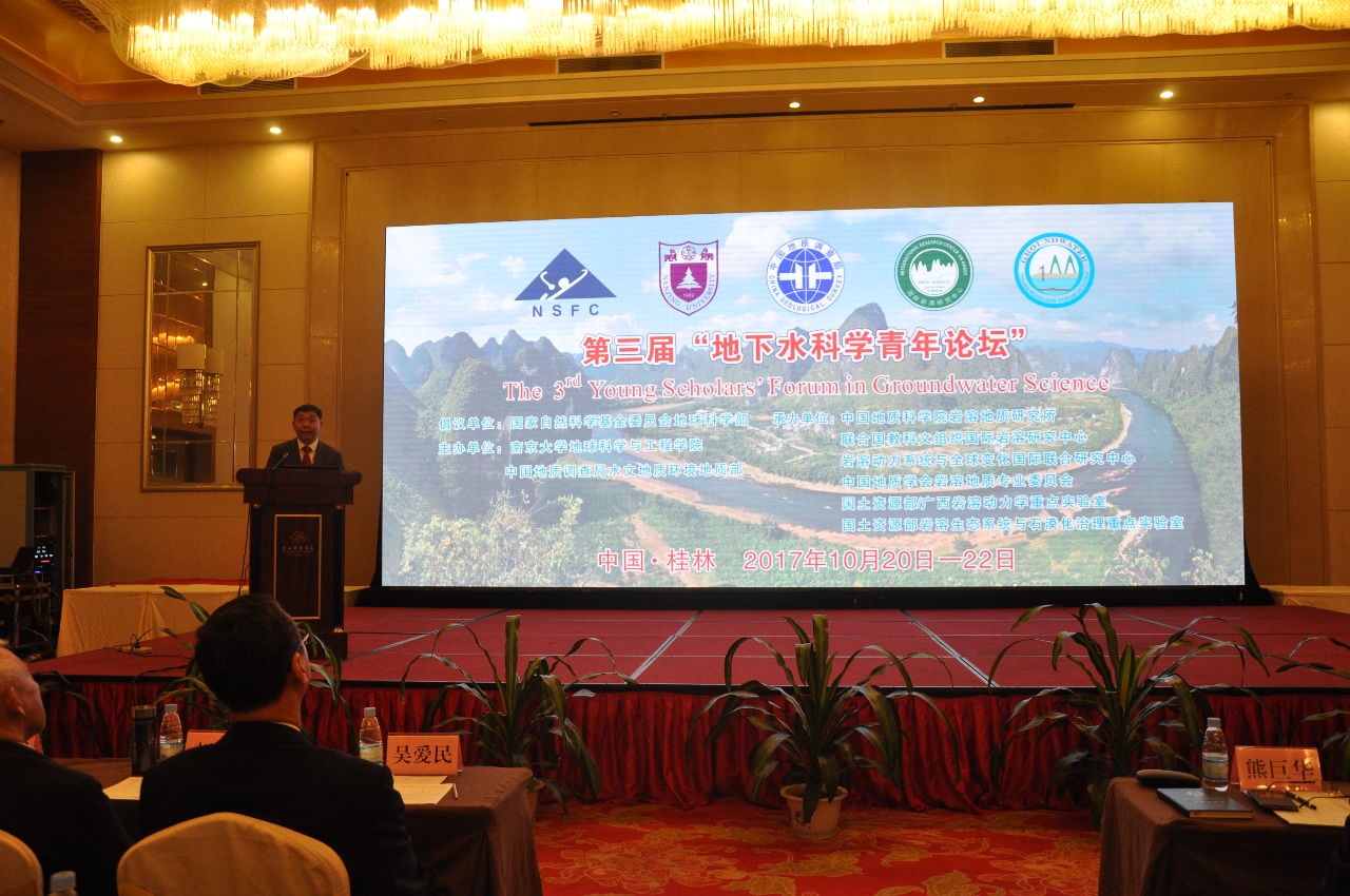 2017年10月21日~22日,由国家自然科学基金委员会地球科学部倡议,pg电子官方网站和中国地质调查局水文地质环境地质部主办,中国地质调查局岩溶地质研究所承办的第三届“地下水科学青年论坛”在广西桂林顺利召开。本论坛旨在交流学术思想和科研经验,促进我国地下水科学青年学者的成长,提升我国地下水学科的蓬勃发展。